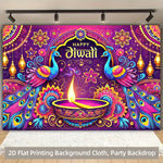 1pc 2D Flat Indian Diwali Party Backdrop - Vibrant Neon Purple, No Power Required——sym