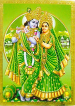 Crafts of India Divine Lovers: Radha Krishna Poster/Reprint Hindu God Picture with Golden Foil (Unframed : Size 5"X7" inches)