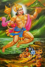 Flying Lord Hanuman carrying Sanjivini Mountain/ Hindu God Poster (Unframed : 10" X 16" Inches)