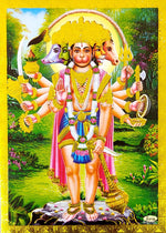 Crafts of India Panchmukhi Hanuman Poster/Reprint Hindu God Picture with Golden Foil (Unframed : Size 5"X7" inches)