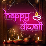 WILLBOND Happy Diwali Neon Sign Diwali Diya Party Decoration Deepawali LED Neon Light Sign Indian Hindu Pooja Room Light Hanging Decoration for Puja Party Festival Gifts