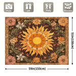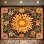1pc Sun and Moon Tapestry, Yellow Floral Pattern, Polyester Fabric Wall Hanging for Door, Wall, Patio