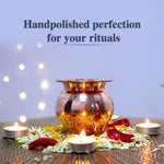 - Crafted from top-notch brass material, this small copper kalash symbolizes spirituality, positivity, and greatness. It reflects the idea of finding balance in life, blending traditional values with a modern perspective.