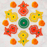 Brighten your home with our acrylic rangolis, featuring intricate designs crafted from diverse materials. Durable and stylish, these vibrant pieces enhance any space, perfect for festivals, celebrations, or everyday decor.