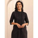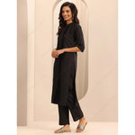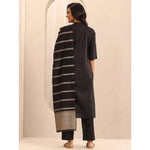 પરંપરાગત મહિલાઓનો કાળો પ્લીટેડ કુર્તા સેટ પટ્ટાવાળા દુપટ્ટા પેન્ટ સાથે ભવ્ય એથનિક ભારતીય સૂટ દૈનિક તહેવારોના વસ્ત્રો પાકિસ્તાની
