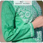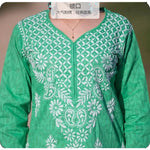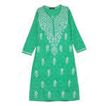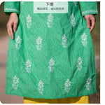 મહિલાઓની ભરતકામવાળી કુર્તી ભારતીય/પાકિસ્તાની ટ્યુનિક ટોપ વસંત ઉનાળામાં પાતળો પરંપરાગત દક્ષિણ એશિયન ડ્રેસ ટોપ લીલો બ્લાઉઝ કોટન