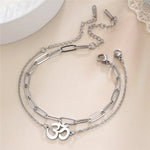 સ્કાયરિમ ભારતીય બૌદ્ધ ધર્મ યોગ ઓએમ એન્કલેટ મહિલા સ્ટેનલેસ સ્ટીલ ડબલ લેયર બીડ્સ ચેઇન એન્કલે બ્રેસલેટ તાવીજ ઉનાળાના એસેસરીઝ