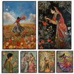 ભારતીય છોકરીના પોસ્ટર મુઘલ પ્રેરિત પરંપરાગત ભારતીય પાકિસ્તાની આર્ટ પ્રિન્ટ કેનવાસ પેઇન્ટિંગ વોલ આર્ટ પિક્ચર્સ હોમ રૂમ ડેકોર
