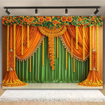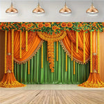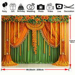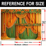 બહુમુખી ભારતીય પૂજા થીમ આધારિત પાર્ટી બેકડ્રોપ્સ - કેલેંડુલા માળા ડિઝાઇન, જન્મદિવસ, વર્ષગાંઠો અને વધુ માટે પોલિએસ્ટર
