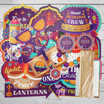 - 【Happy Diwali Photo Booth Props】30pcs funny Festival of Lights Party photo booth props, Hindu exquisite patterns: “Happy Diwali”, "Light wins!", "Time to party", "Feeling prosperous", Diya, candle light, peacock, Aladdin lamp, lantern, elephant, Marigold, hat, lipstick, mouth, mustache, glasses, tie...