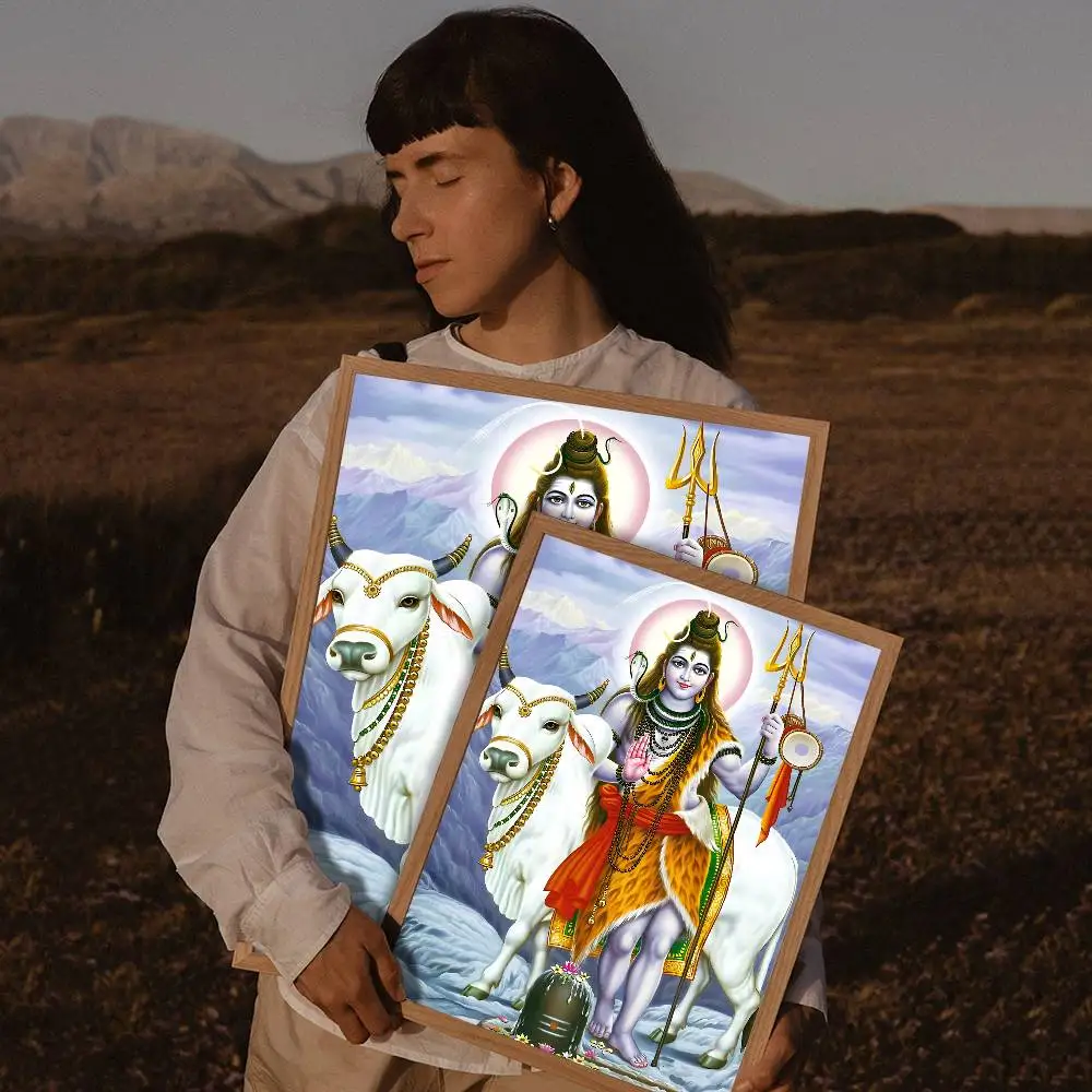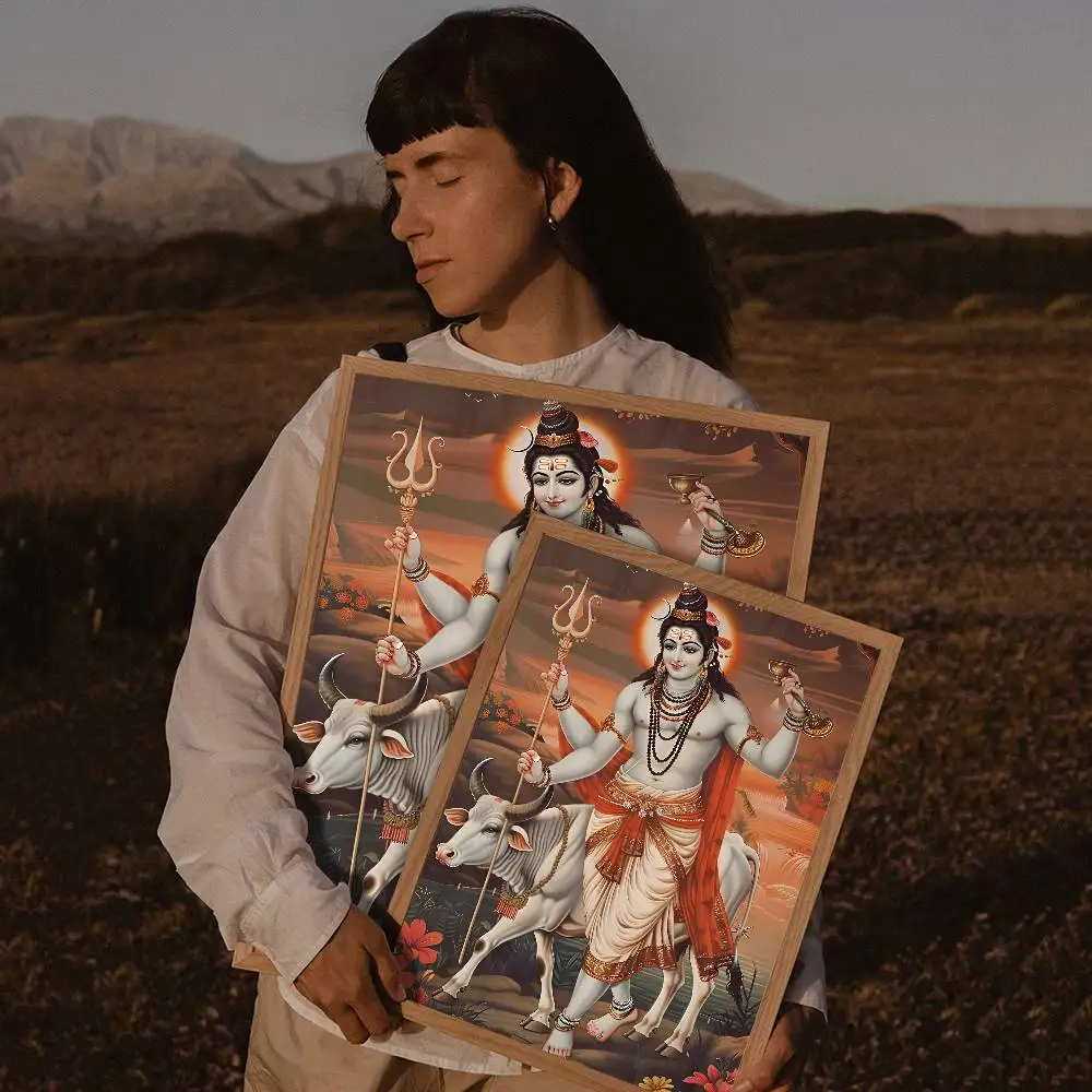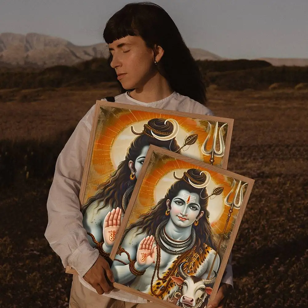 Modern Hindu God Lord Shiva Buddha Portrait Anime Poster Wall for Living Room Bar Wall Sticker Study Home Living Room Decoration