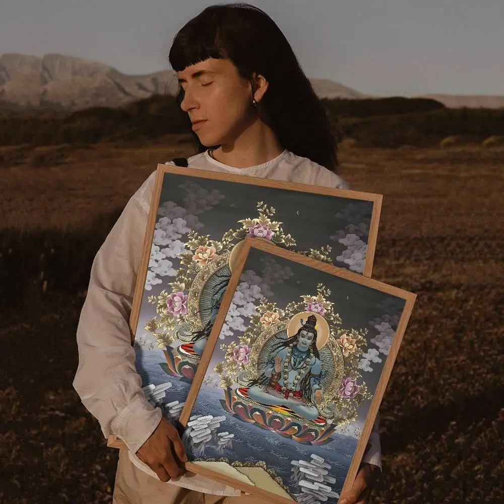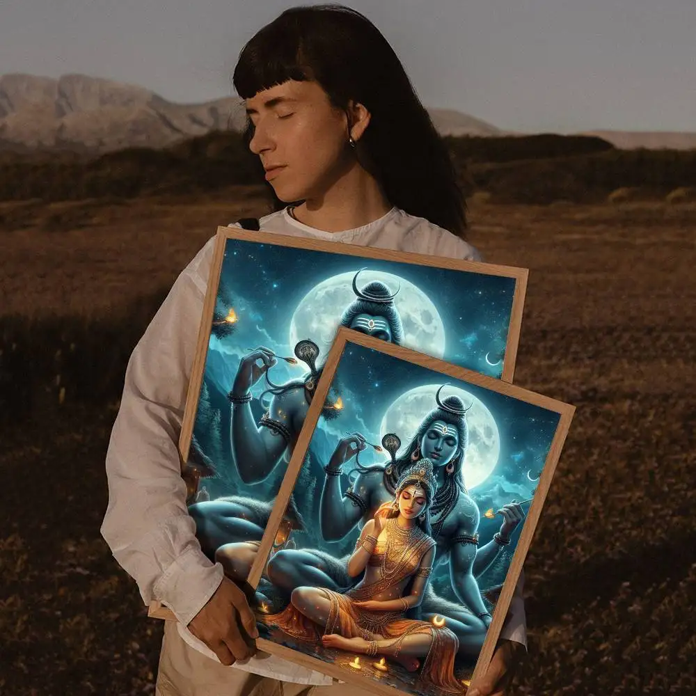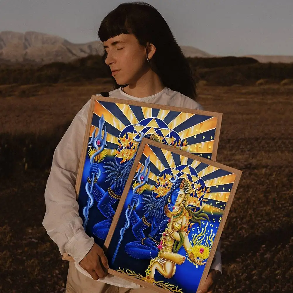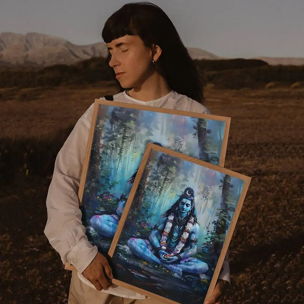 Modern Hindu God Lord Shiva Buddha Portrait Anime Poster Wall for Living Room Bar Wall Sticker Study Home Living Room Decoration
