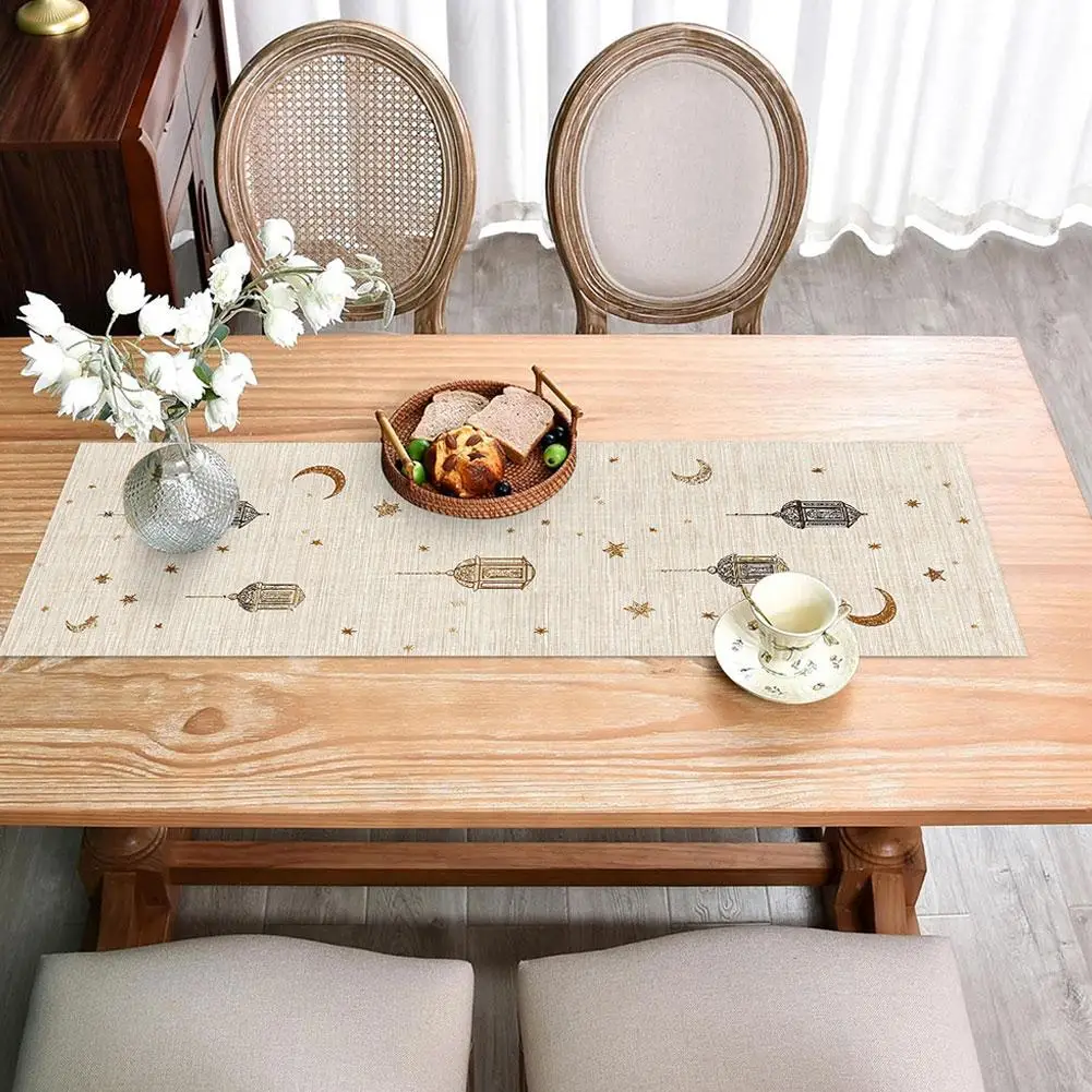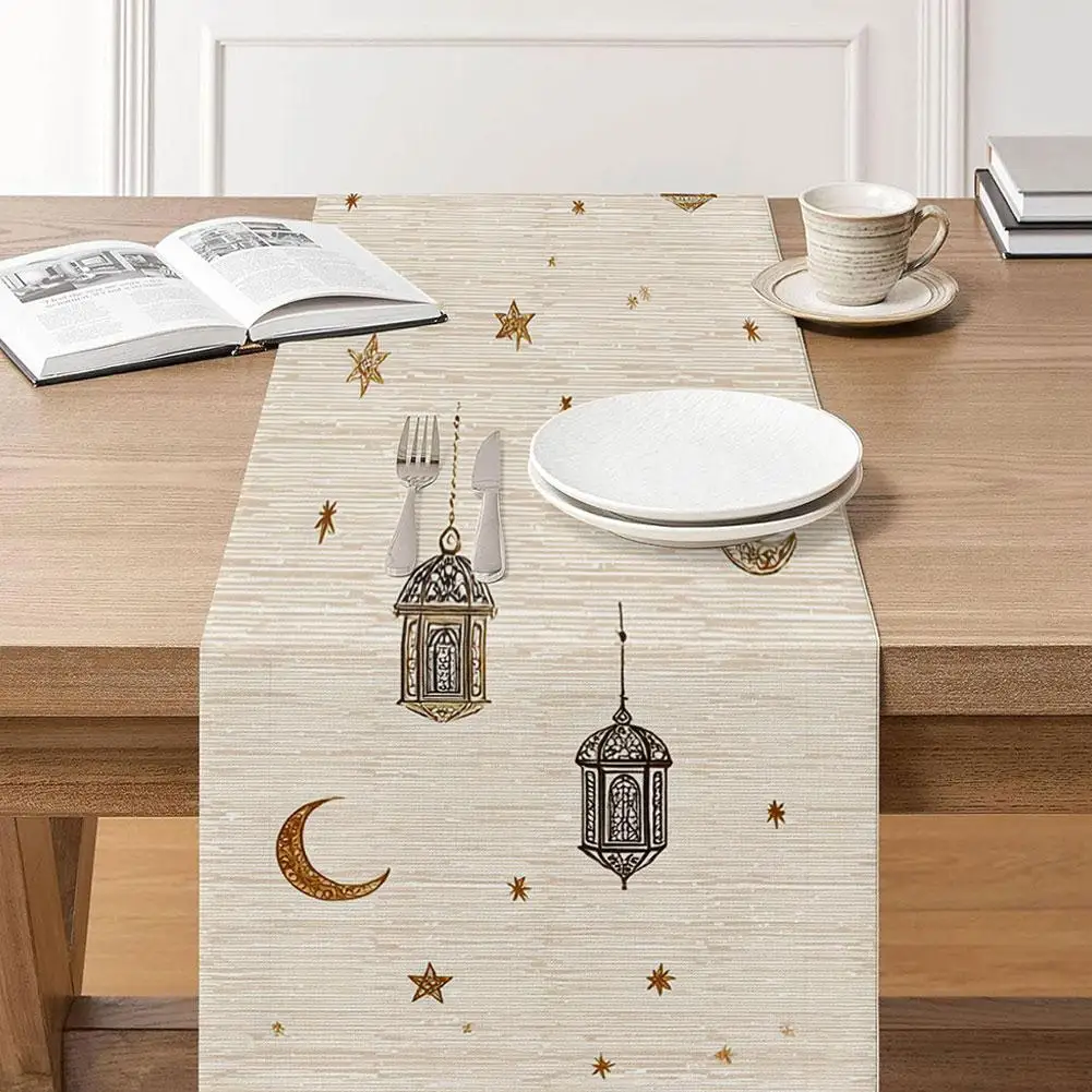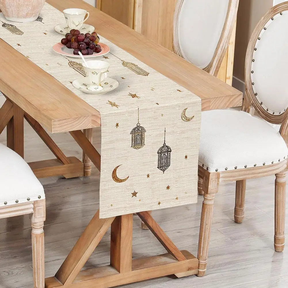 180*35cm Ramadan Star And Moon Lantern Table Runner Eid Decoration Table Runner Dust Cover Muslim Festival Decor Long Tablecloth
