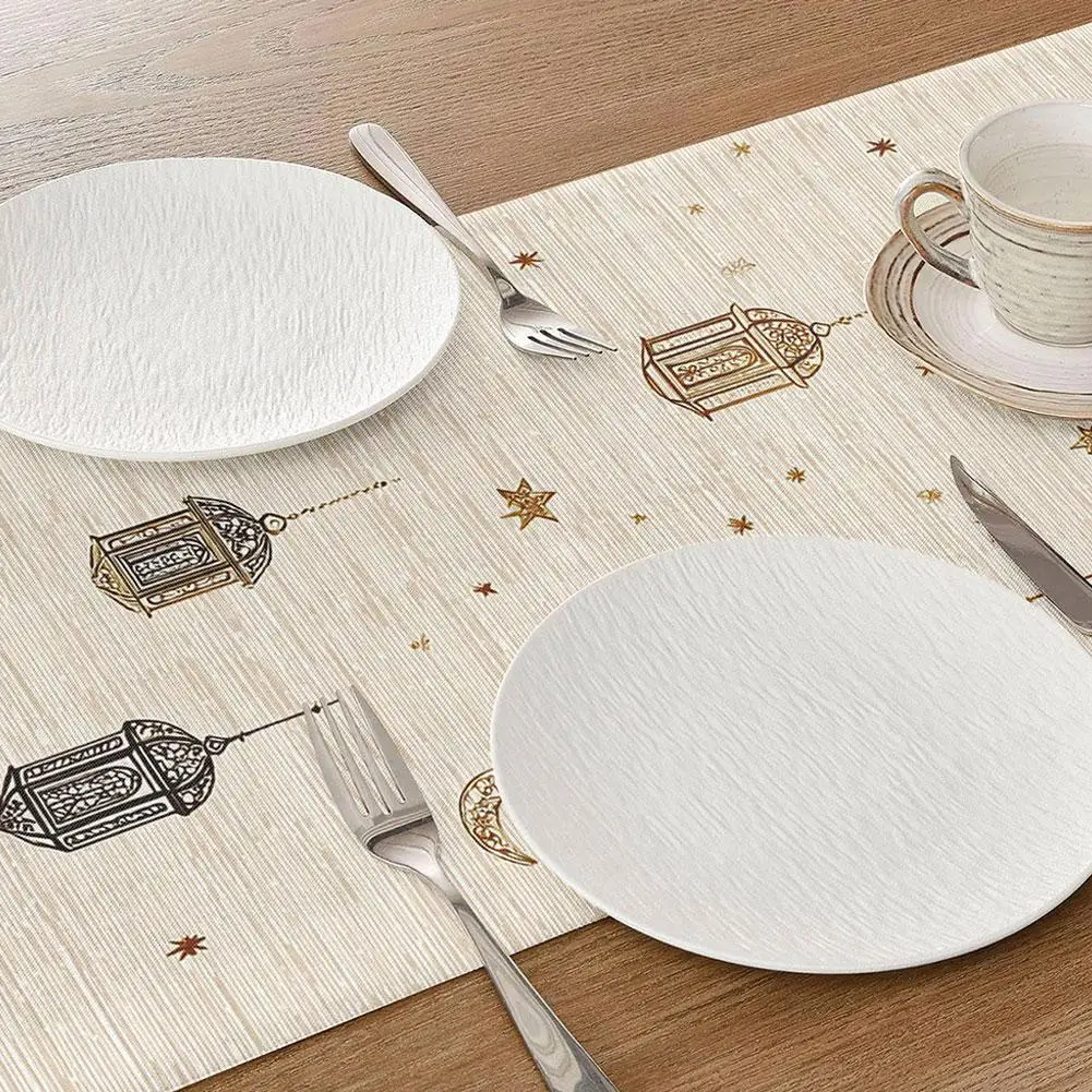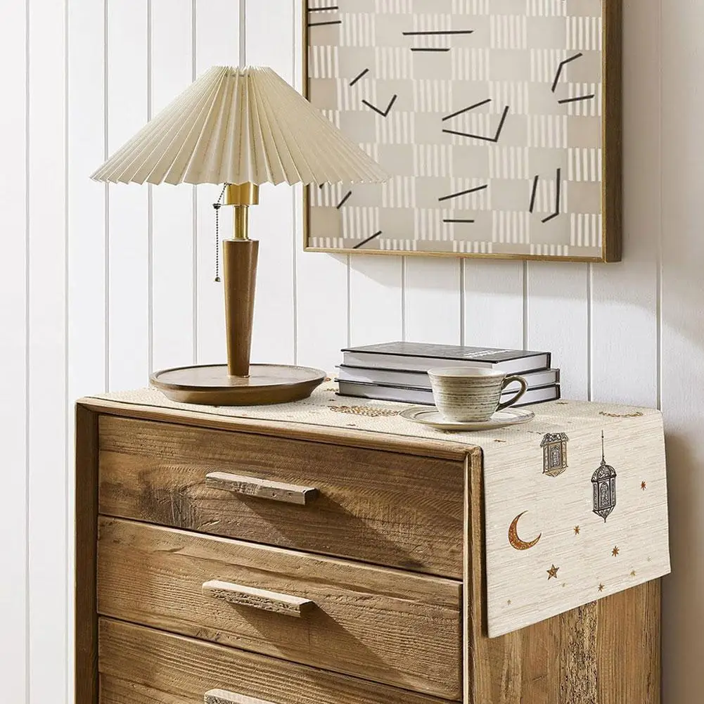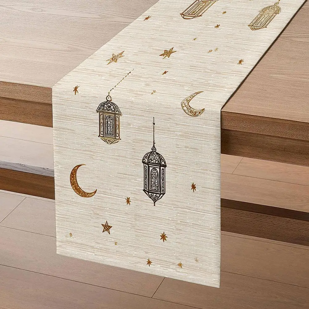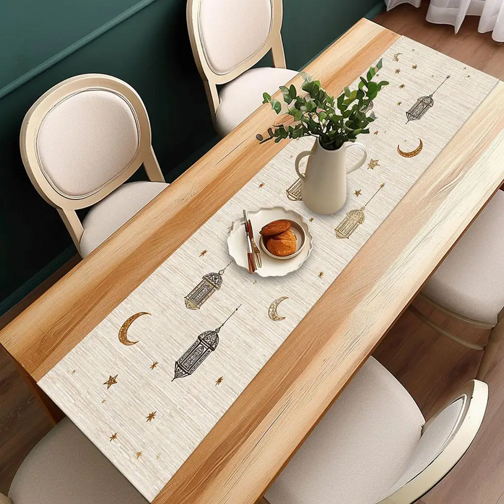 180*35cm Ramadan Star And Moon Lantern Table Runner Eid Decoration Table Runner Dust Cover Muslim Festival Decor Long Tablecloth