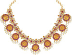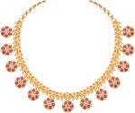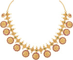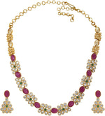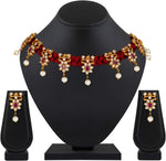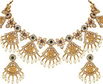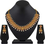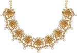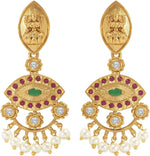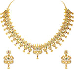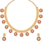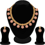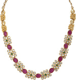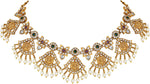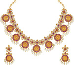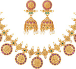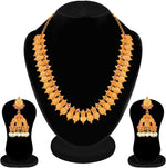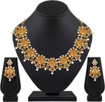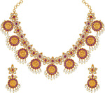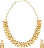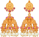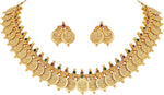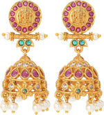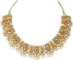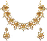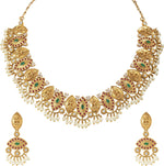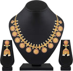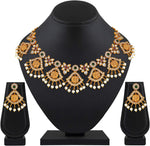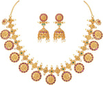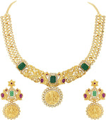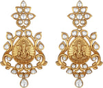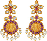 Aheli Beautiful Wedding Wear Indian Laxmi Goddess Faux Stone Studded Floral Design Crafted Necklace Earrings Set Ethnic Fashion Jewelry for Women