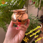 - Copper Kalash or copper lota denotes simplicity and divine energy, which gets transferred when you focus on your wellness practices. It is suitable in Pooja Thali to carry water for pooja vidhi.