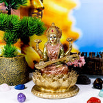 Hindu Goddess Lord Saraswati Statue - 6.3"H Indian Idol Saraswati Sitting on Lotus Sculpture India God Figurine Home Mandir Temple Altar Yoga Decor Diwali Pooja Gifts