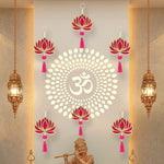 - Beautifully Handcrafted Lotus Wall Decor Piece with Pink Coloured Jhumke and Beads. Can be used as a Traditional Gift on Any Occasion Or Celebration